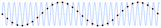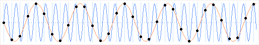 Sine waves above 1/2 sampling rate (blue) and resulting aliases (orange)