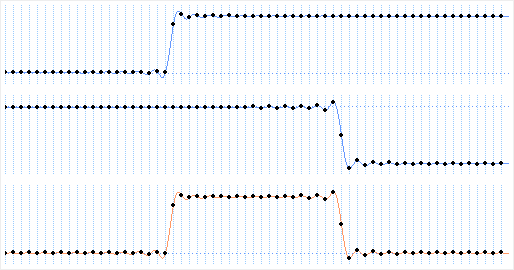 Sampled band-limited steps (blue) added together (orange)